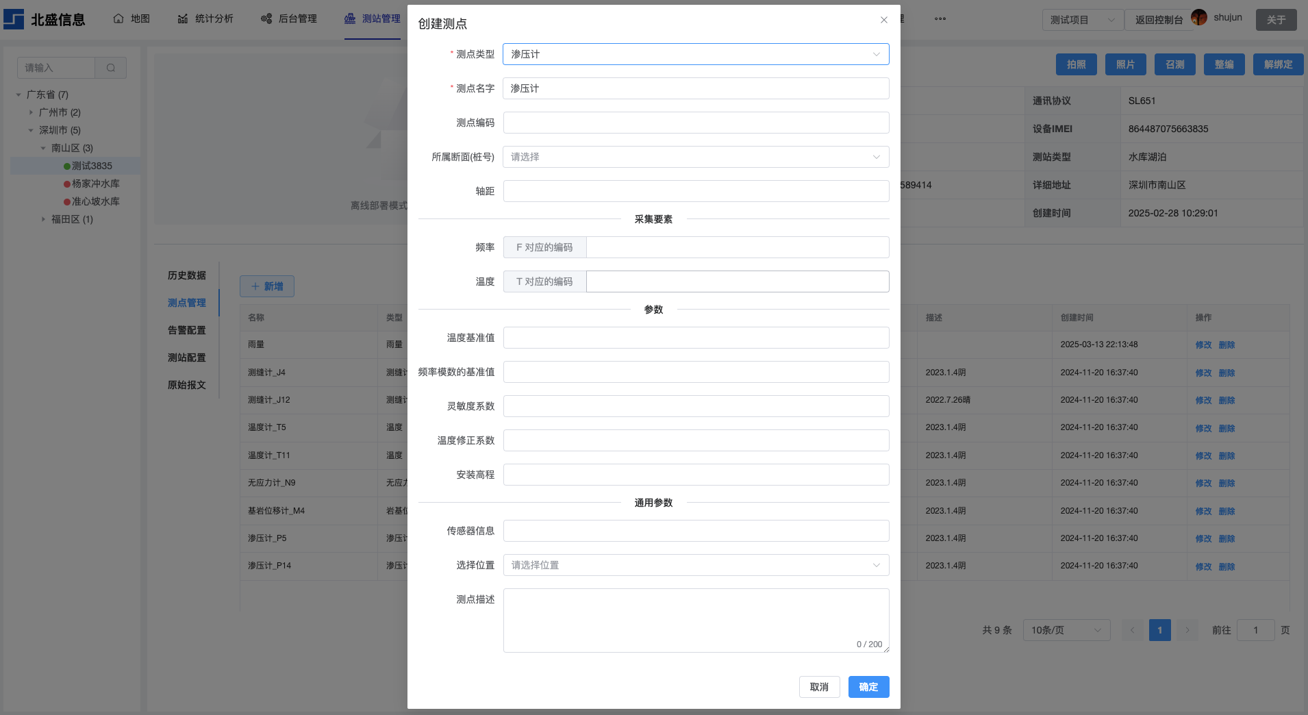 下面是我们支持的传感器列表。在平台上为测站添加测点的时候,传感器对应的参数需填写完整。